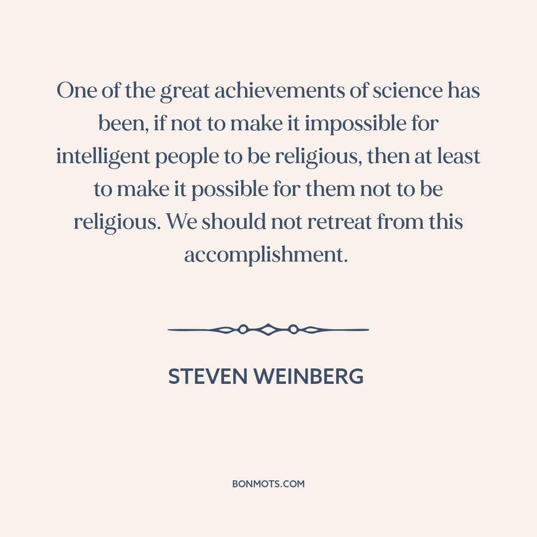 One of the great achievements of science has been, if not to make it impossible for intelligent people to be religious, then at least to make it possible for them not to be religious. We should not retreat from this accomplishment.