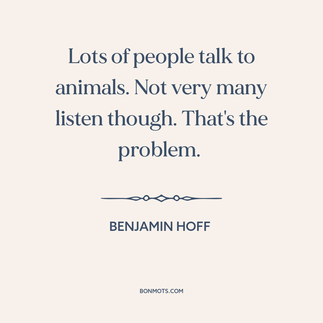 Lots of people talk to animals. Not very many listen though. That's the problem.
