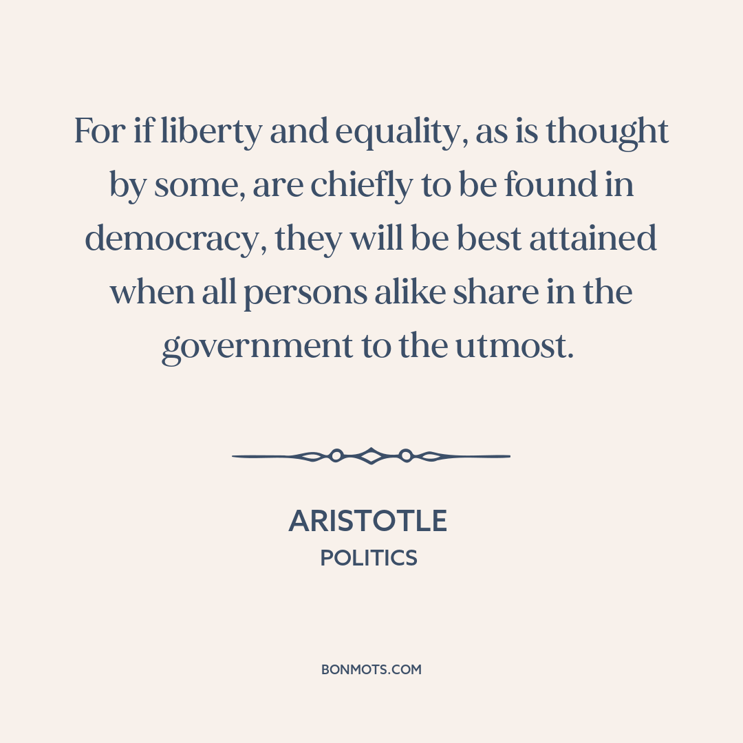 For if liberty and equality, as is thought by some, are chiefly to be found in democracy, they will be best attained when all persons alike share in the government to the utmost.