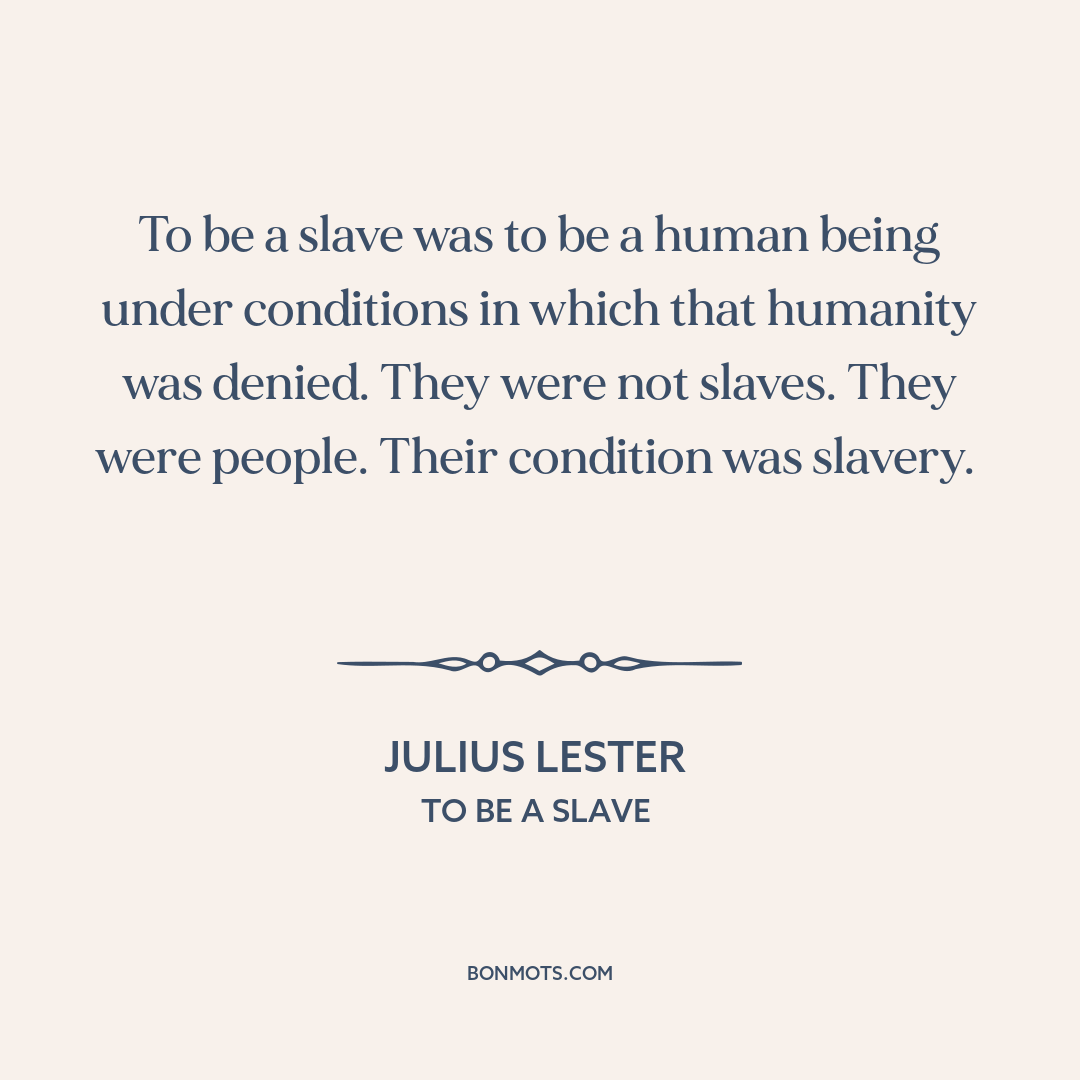 To be a slave was to be a human being under conditions in which that humanity was denied. They were not slaves. They were people. Their condition was slavery.