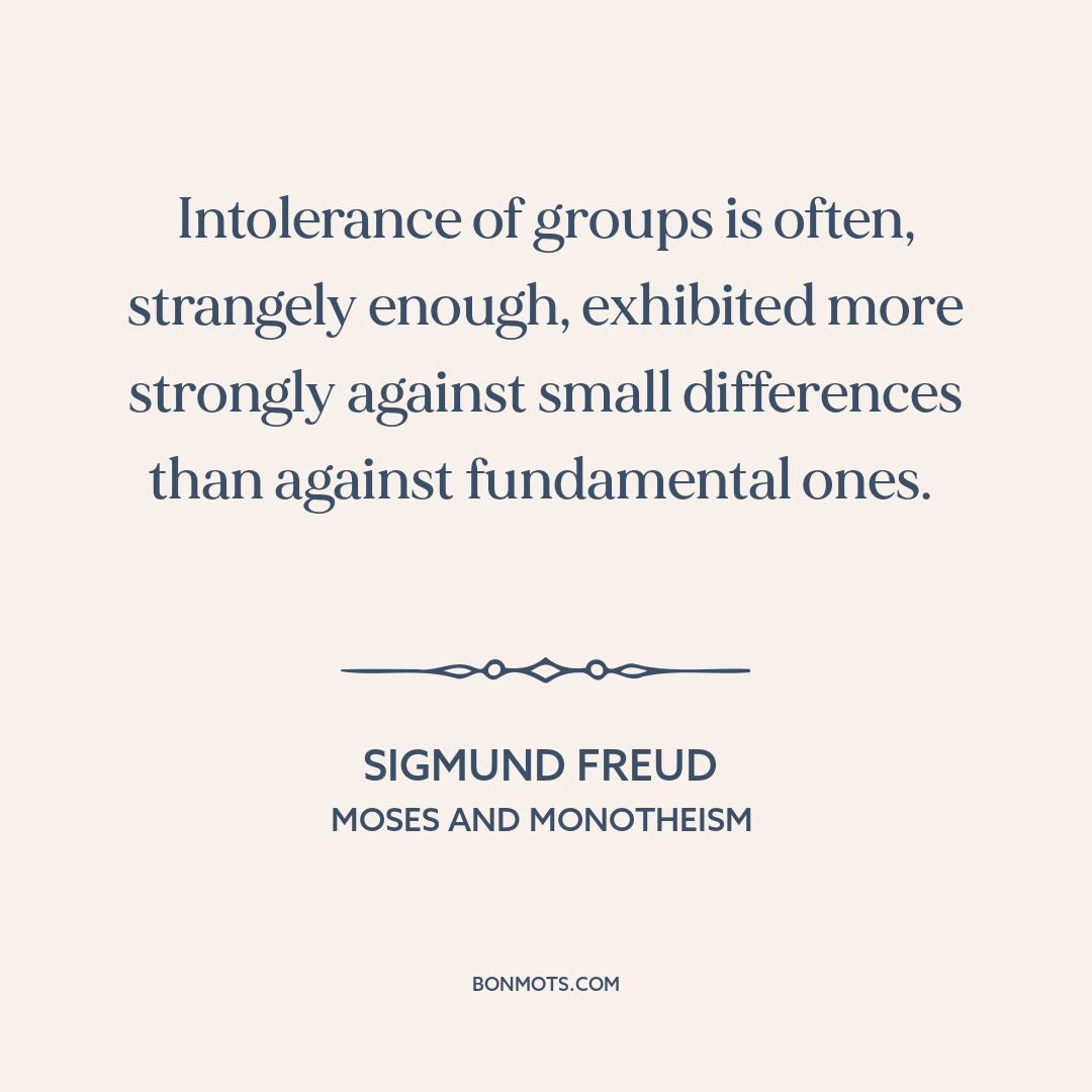 Intolerance of groups is often, strangely enough, exhibited more strongly against small differences than against fundamental ones.