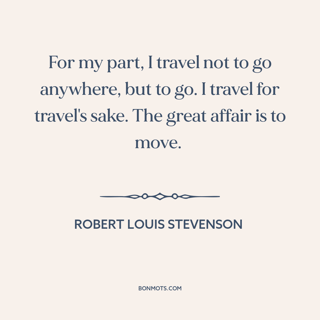 For my part, I travel not to go anywhere, but to go. I travel for travel's sake. The great affair is to move.