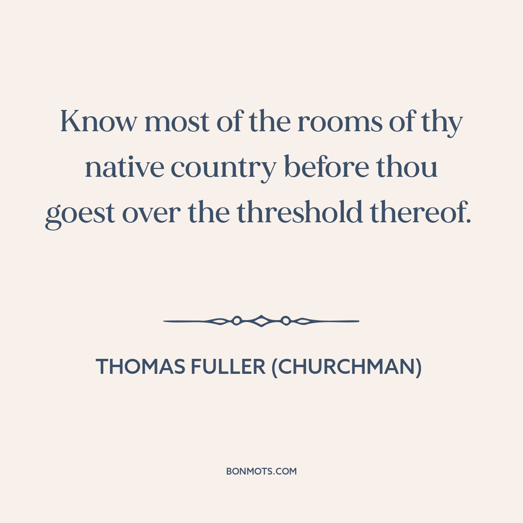 Know most of the rooms of thy native country before thou goest over the threshold thereof.