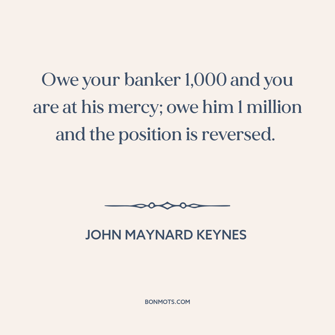 Owe your banker 1,000 and you are at his mercy; owe him 1 million and the position is reversed.
