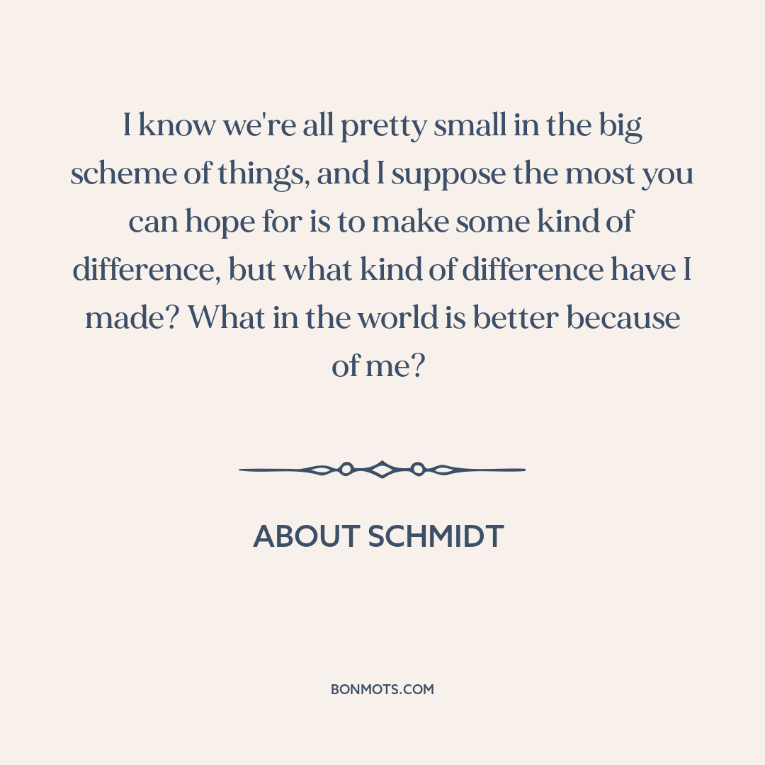 About Schmidt. Directed by Alexander Payne. New Line Cinema, 2002.