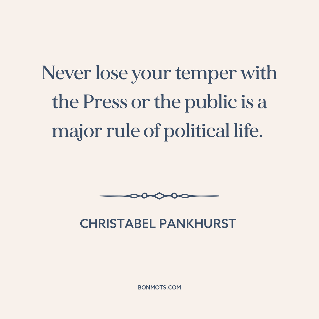 Never lose your temper with the Press or the public is a major rule of political life.