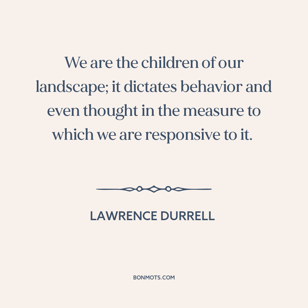 We are the children of our landscape; it dictates behavior and even thought in the measure to which we are responsive to it.