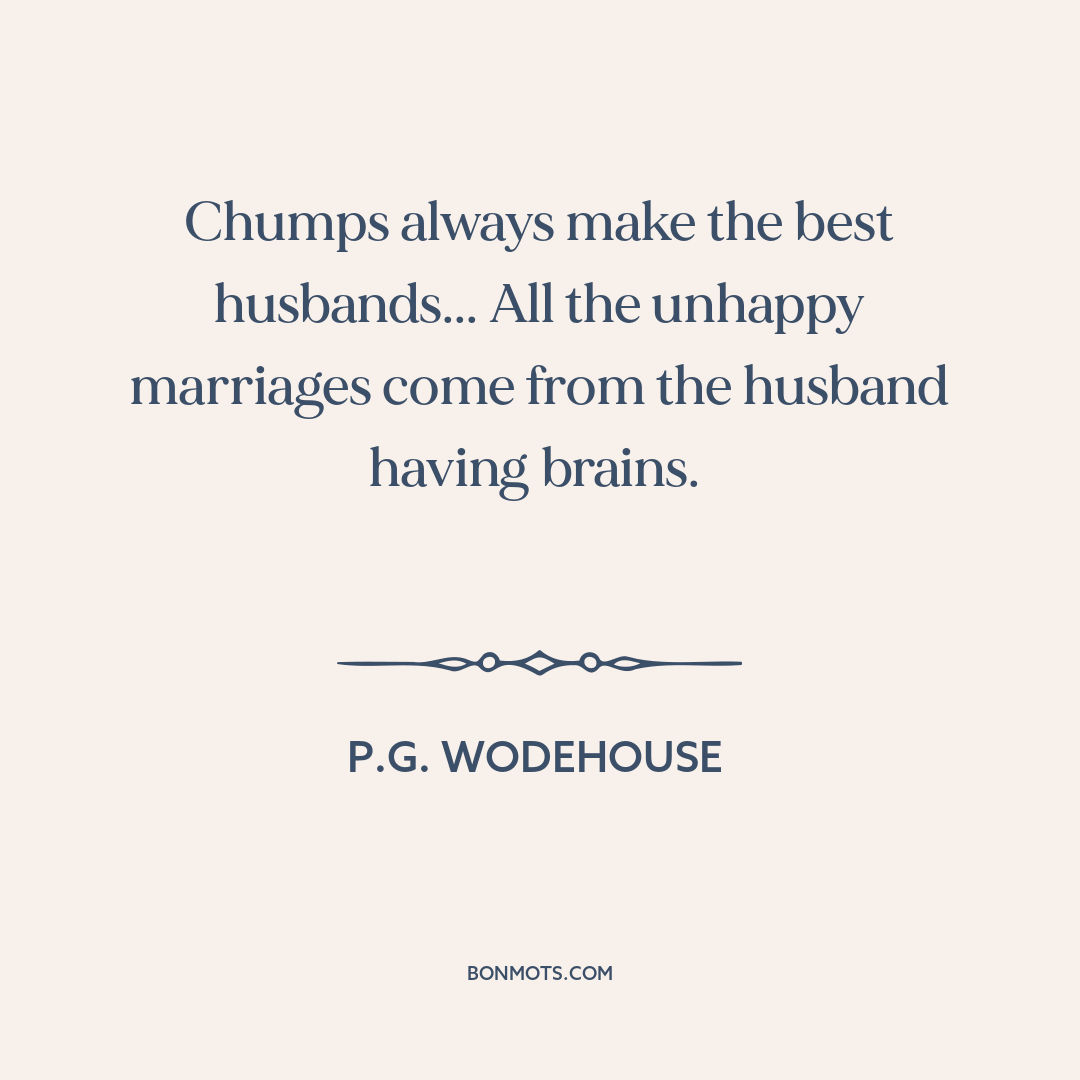 Chumps always make the best husbands... All the unhappy marriages come from the husband having brains.