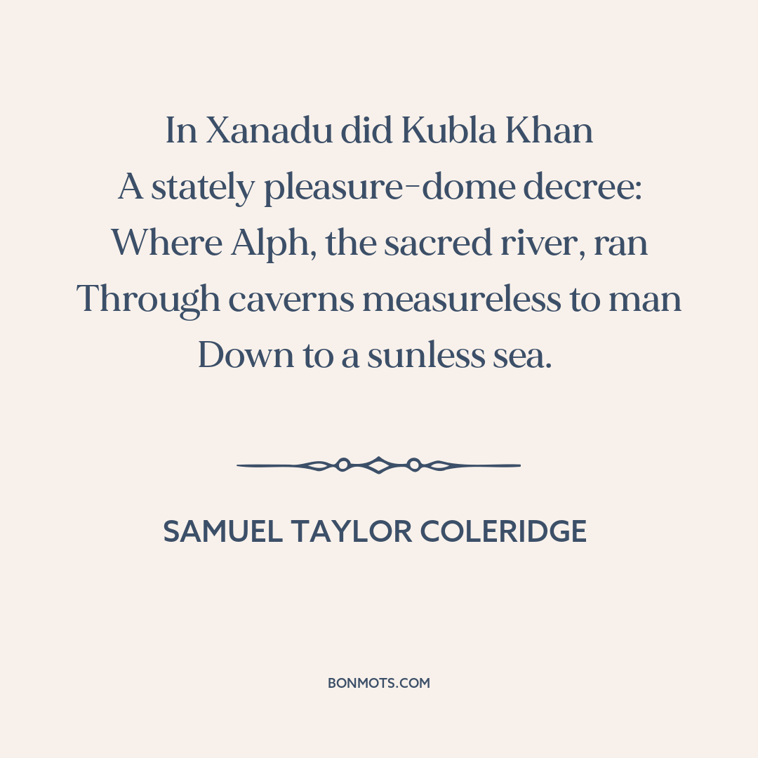 Coleridge, Samuel Taylor. "Kubla Khan." Christabel; Kubla Khan, a Vision; The Pains of Sleep. London: John Murray, 1816, I. 1.