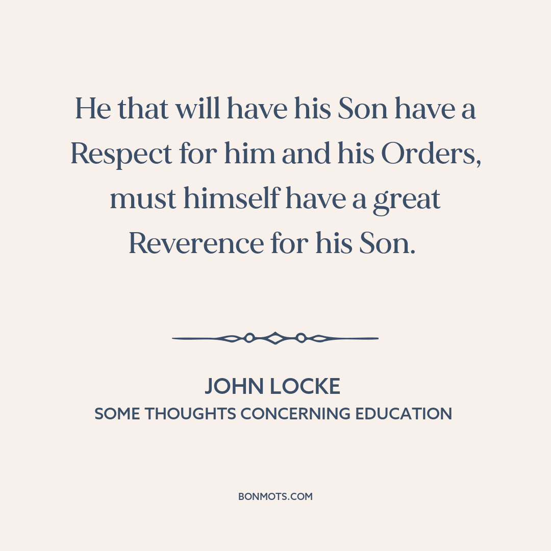 He that will have his Son have a Respect for him and his Orders, must himself have a great Reverence for his Son.