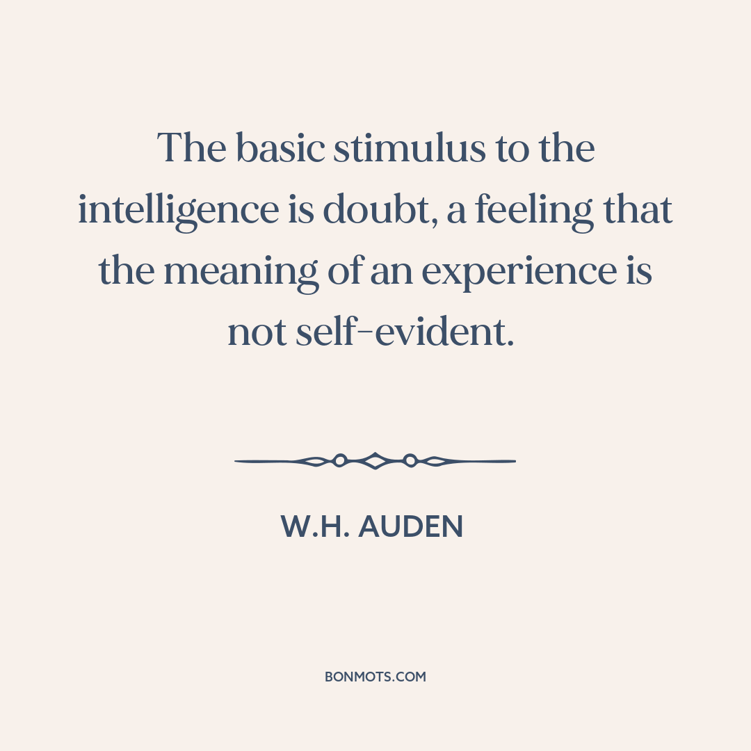 The basic stimulus to the intelligence is doubt, a feeling that the meaning of an experience is not self-evident.