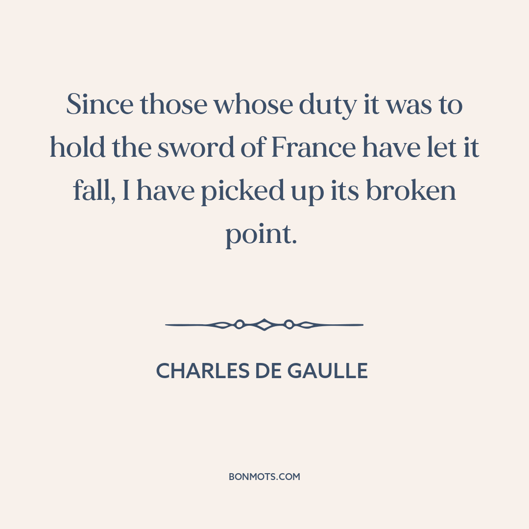 Since those whose duty it was to hold the sword of France have let it fall, I have picked up its broken point.