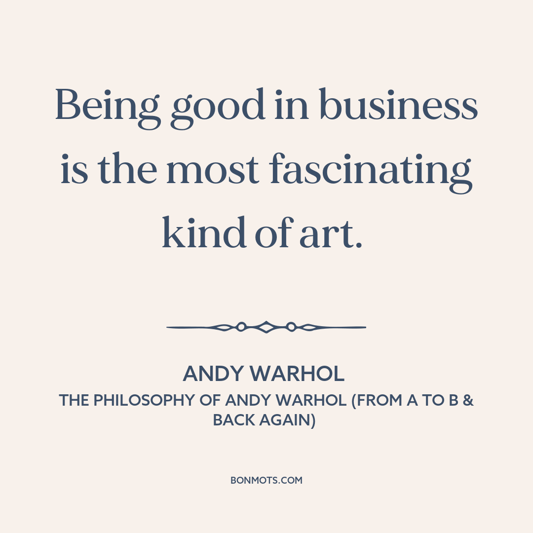 Being good in business is the most fascinating kind of art.