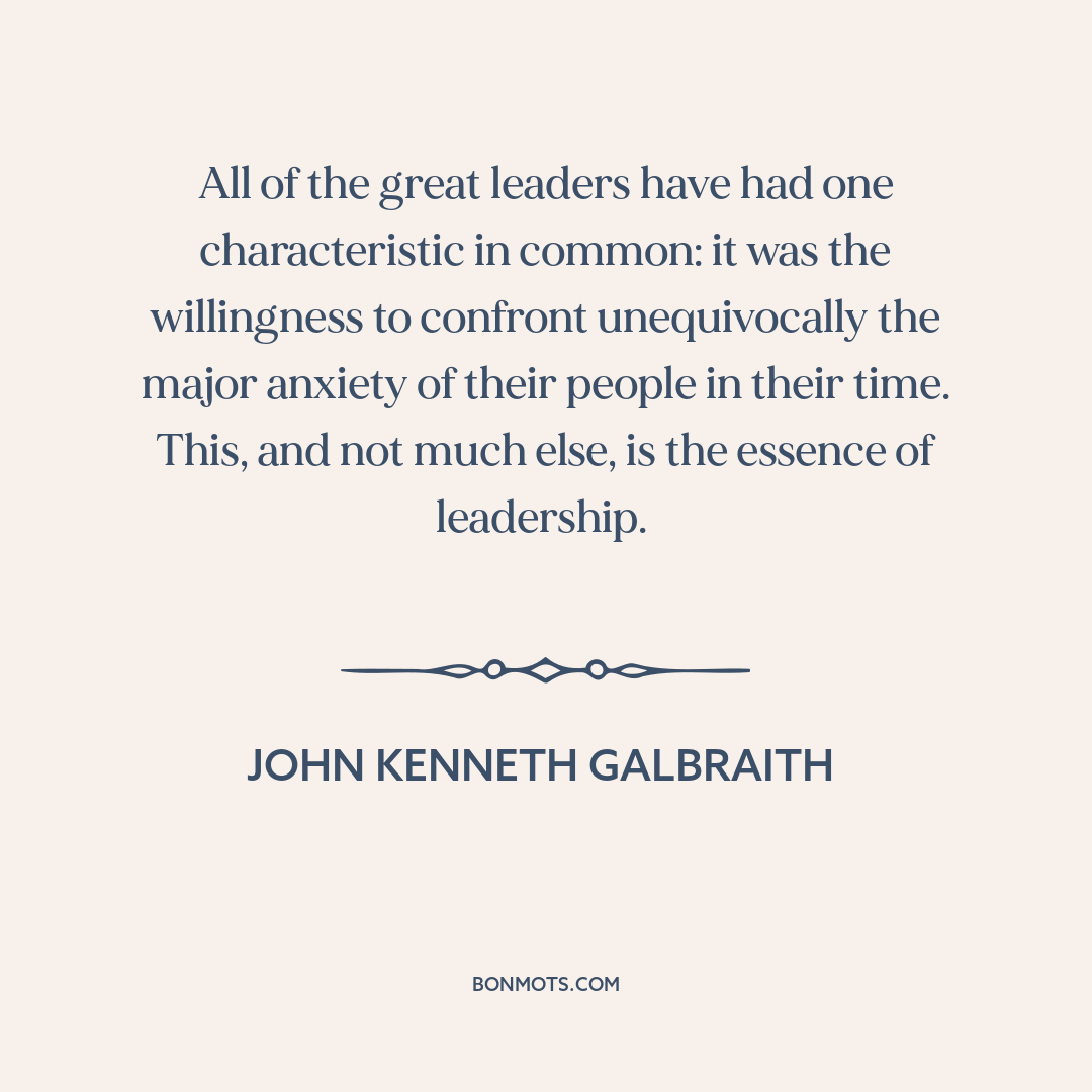 All of the great leaders have had one characteristic in common: it was the willingness to confront unequivocally the major anxiety of their people in their time. This, and not much else, is the essence of leadership.