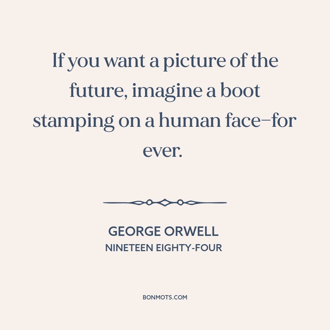 If you want a picture of the future, imagine a boot stamping on a human face—for ever.