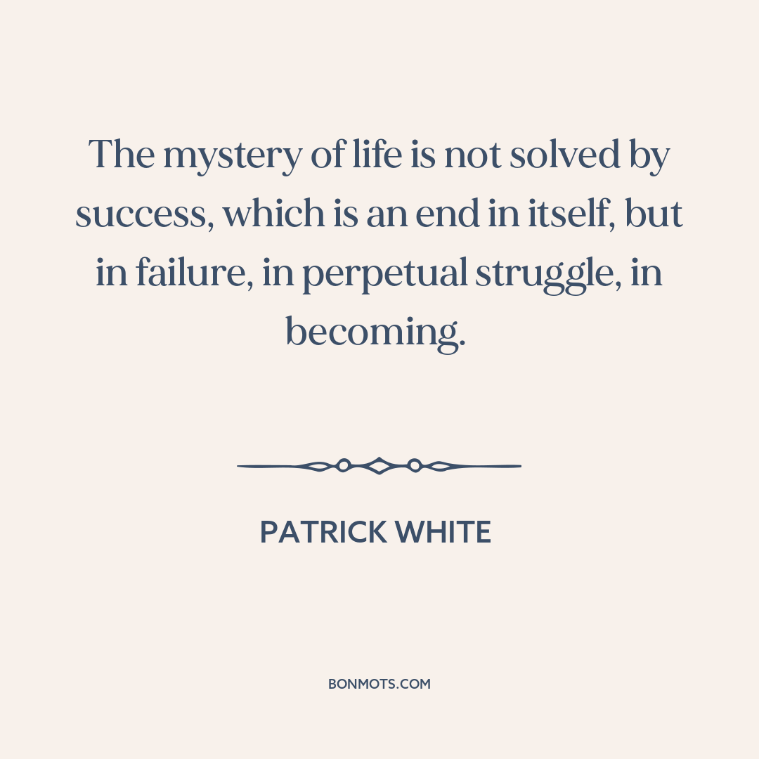 The mystery of life is not solved by success, which is an end in itself, but in failure, in perpetual struggle, in becoming.