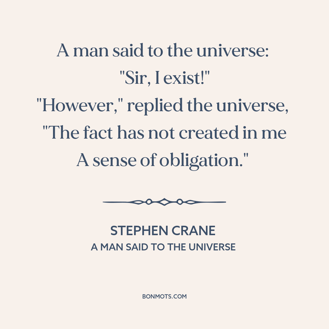 Crane, Stephen. "A Man Said to the Universe." War is Kind and Other Lines. Dover Publications, 2016, I. 1.