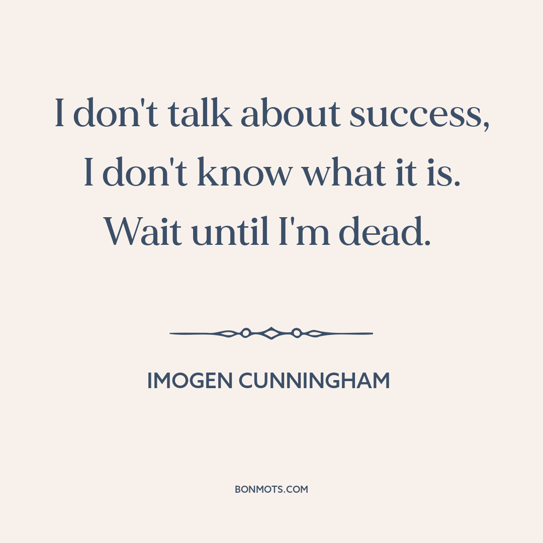 I don't talk about success, I don't know what it is. Wait until I'm dead.