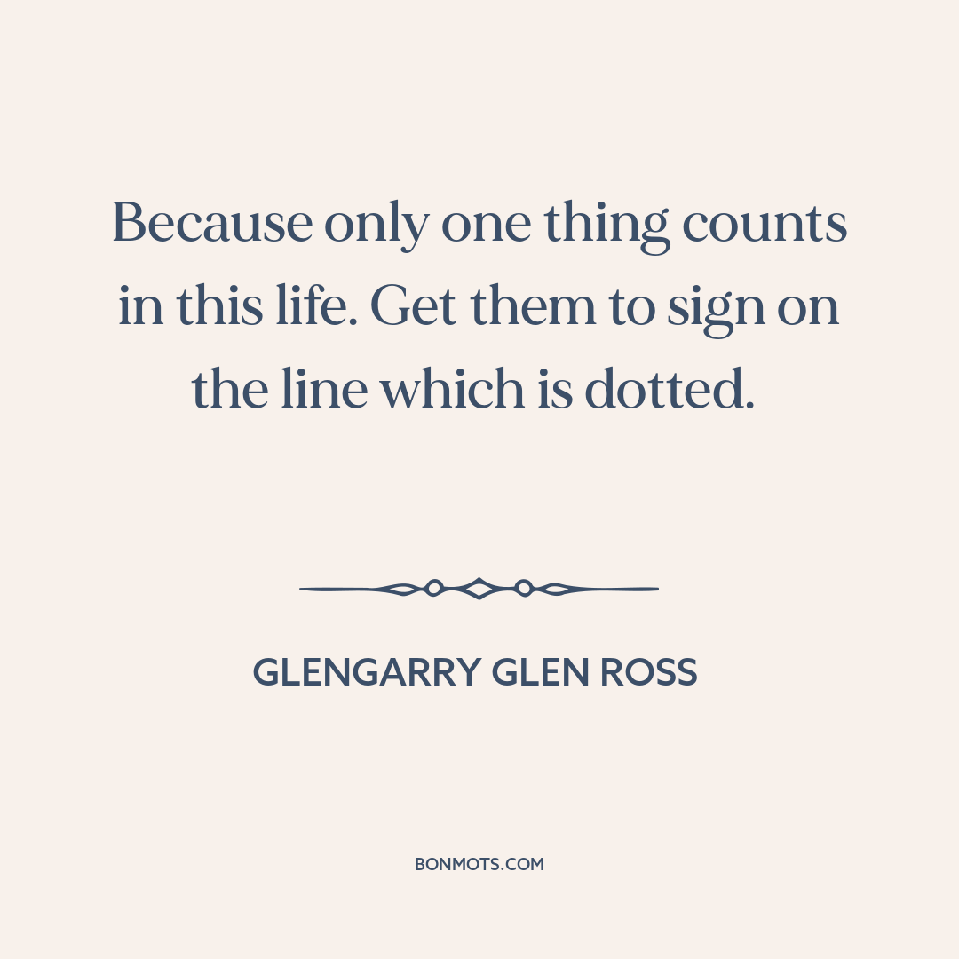 Because only one thing counts in this life. Get them to sign on the line which is dotted.