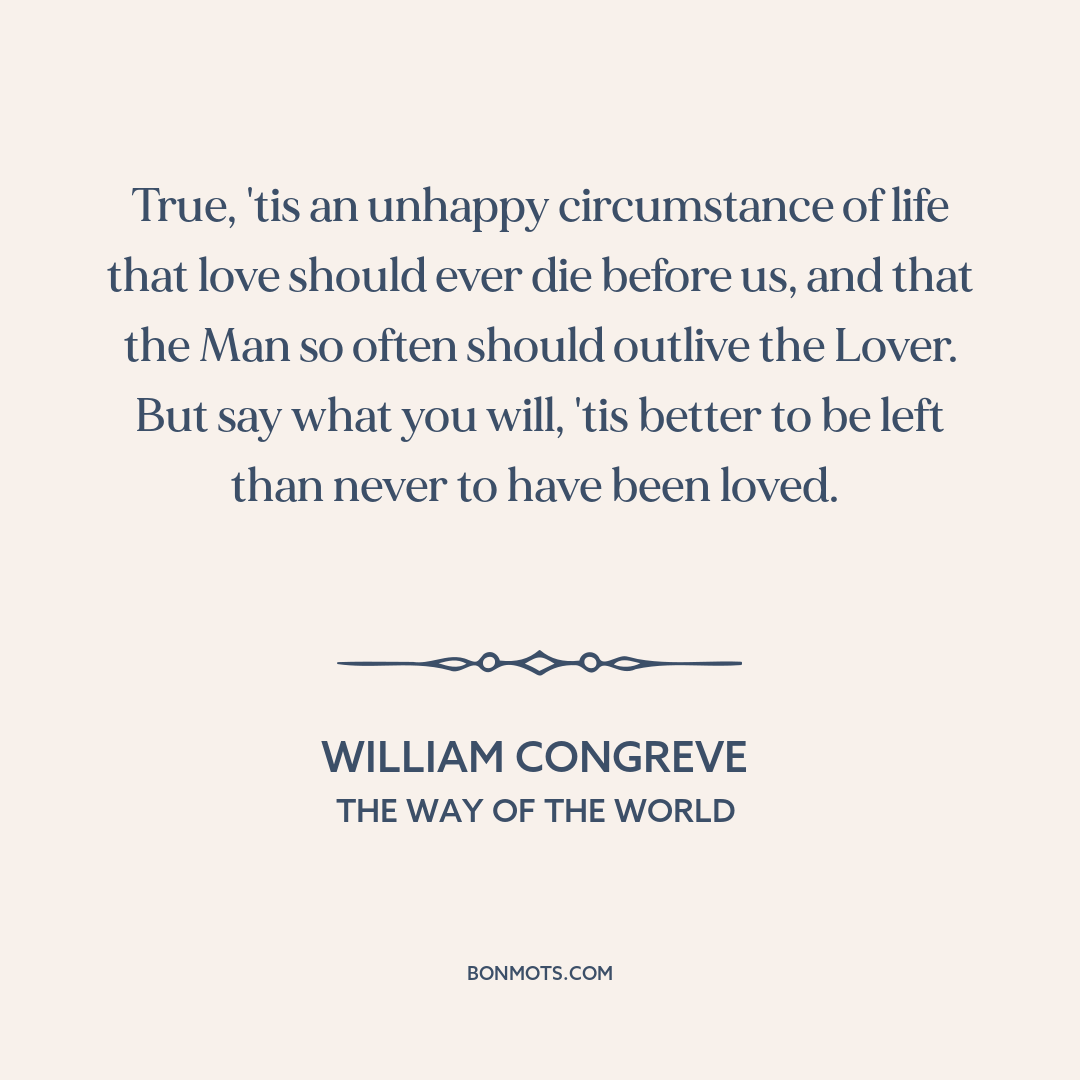 True, 'tis an unhappy circumstance of life that love should ever die before us, and that the Man so often should outlive the Lover. But say what you will, 'tis better to be left than never to have been loved.