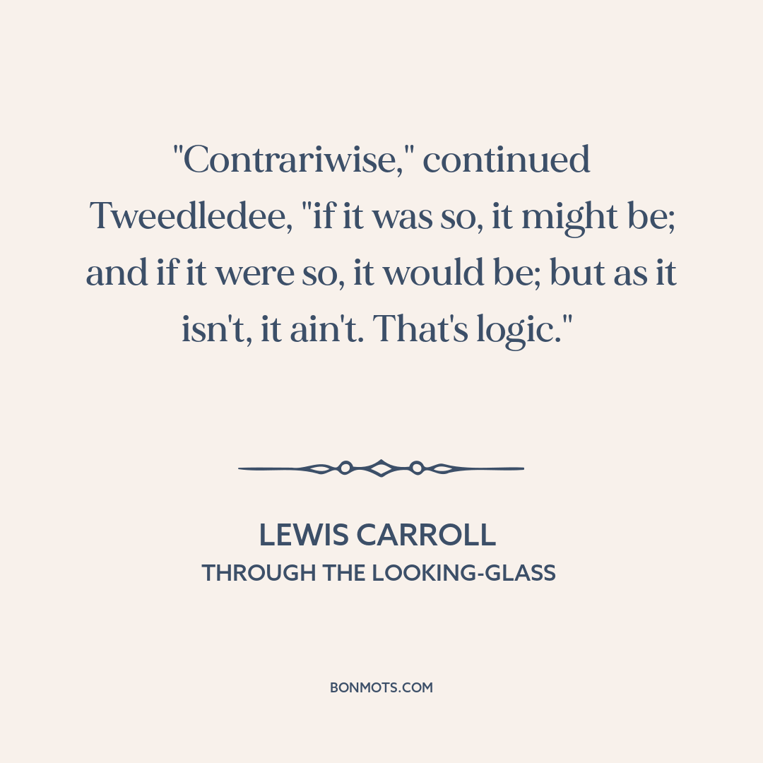 "Contrariwise," continued Tweedledee, "if it was so, it might be; and if it were so, it would be; but as it isn't, it ain't. That's logic."