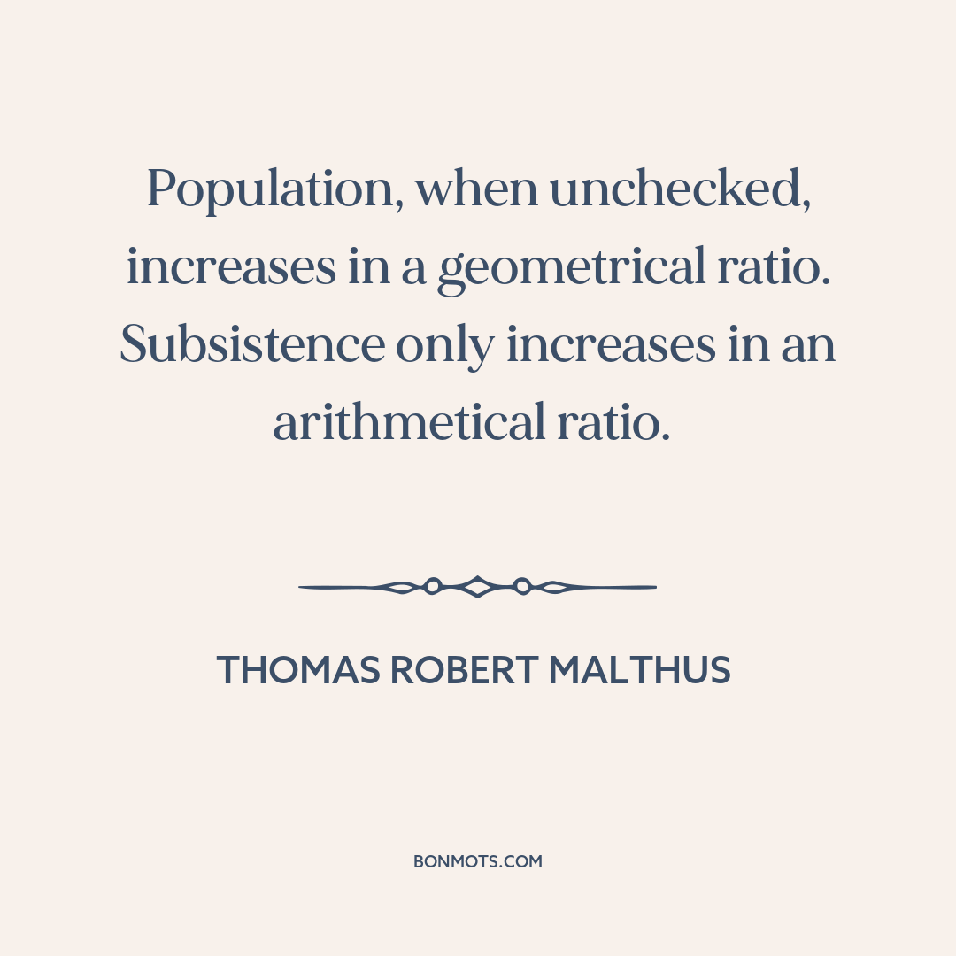 Population, when unchecked, increases in a geometrical ratio. Subsistence only increases in an arithmetical ratio.