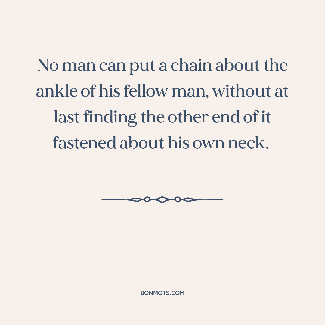 No man can put a chain about the ankle of his fellow man, without at last finding the other end of it fastened about his own neck.