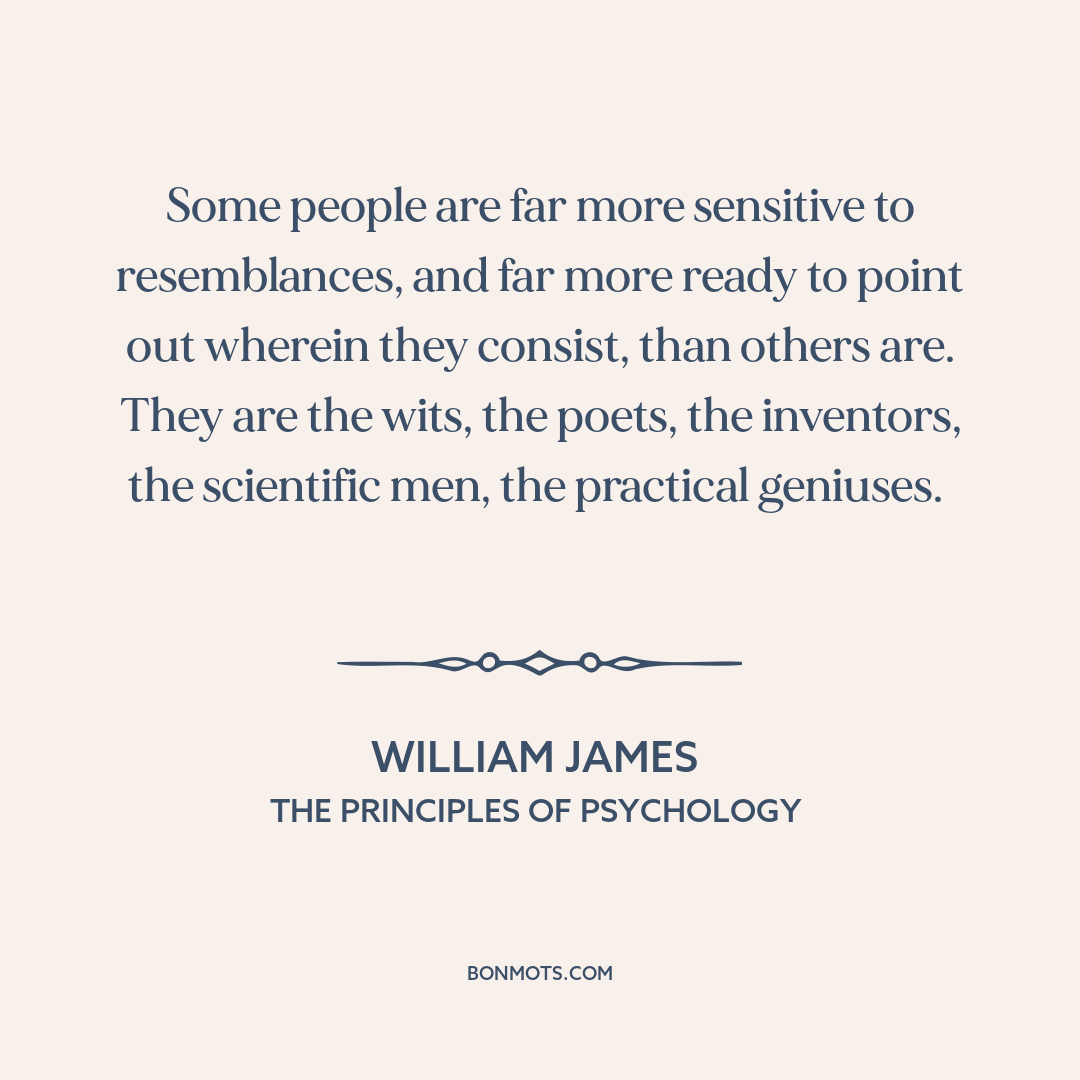 Some people are far more sensitive to resemblances, and far more ready to point out wherein they consist, than others are. They are the wits, the poets, the inventors, the scientific men, the practical geniuses.