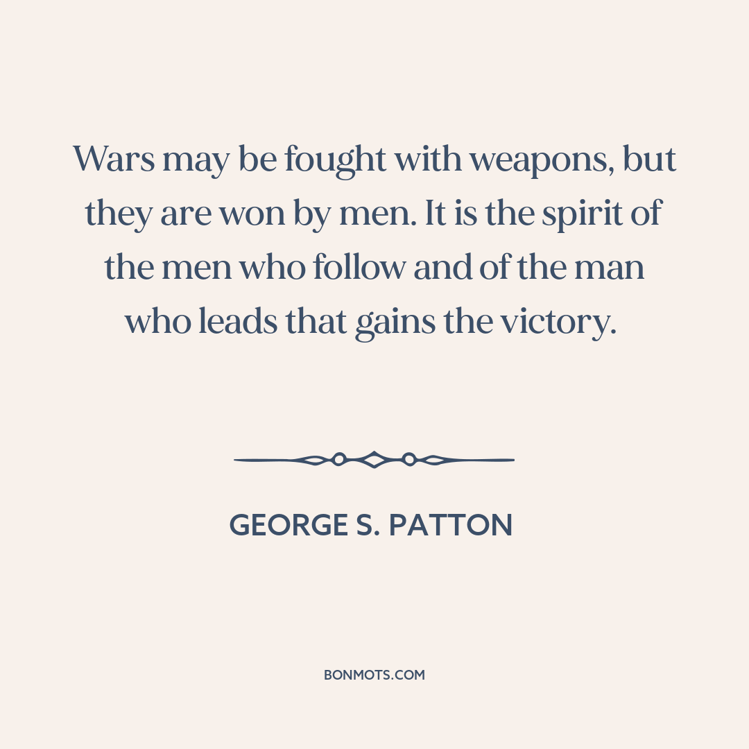 Wars may be fought with weapons, but they are won by men. It is the spirit of the men who follow and of the man who leads that gains the victory.
