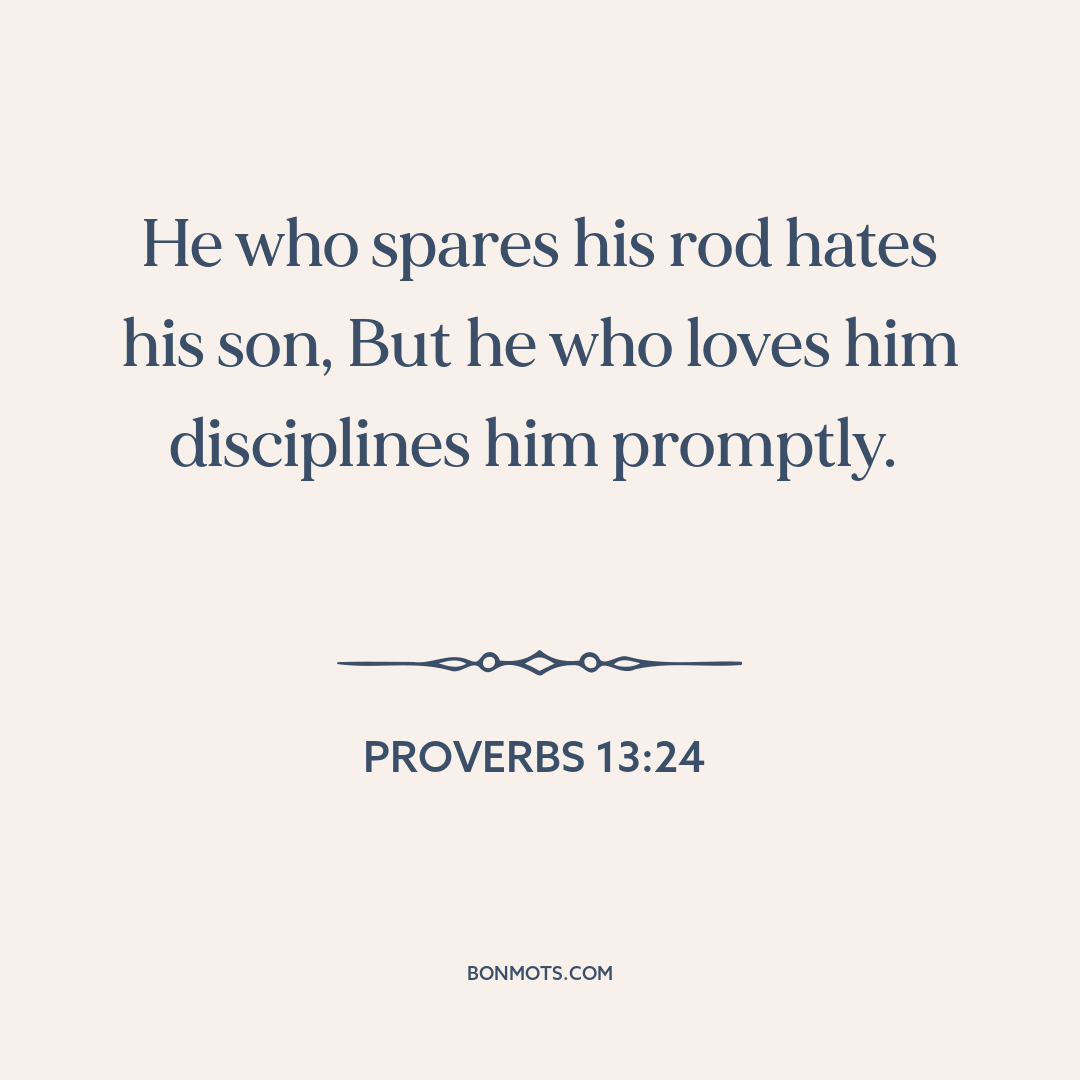 He who spares his rod hates his son, But he who loves him disciplines him promptly.