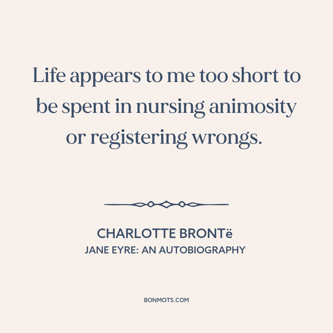 Life appears to me too short to be spent in nursing animosity or registering wrongs.