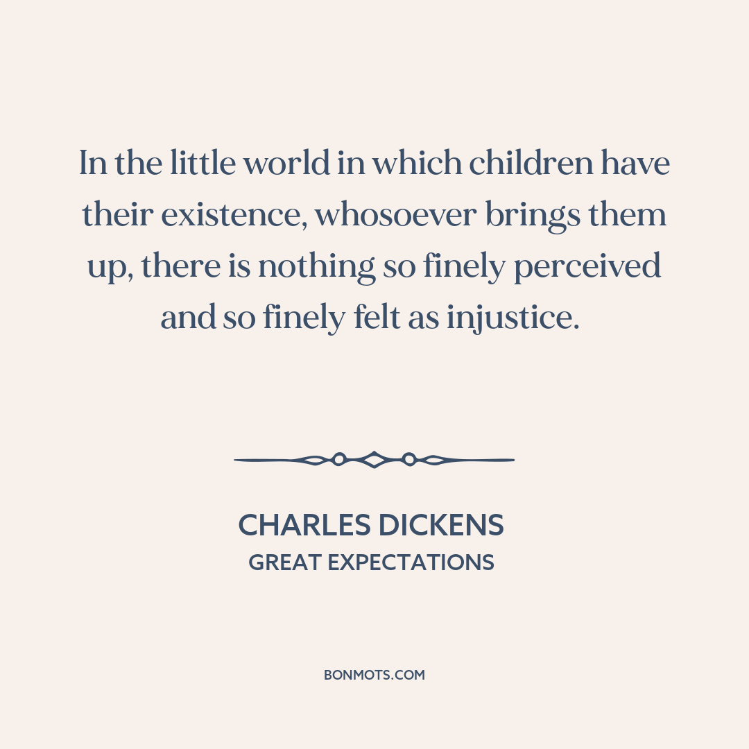 In the little world in which children have their existence, whosoever brings them up, there is nothing so finely perceived and so finely felt as injustice.