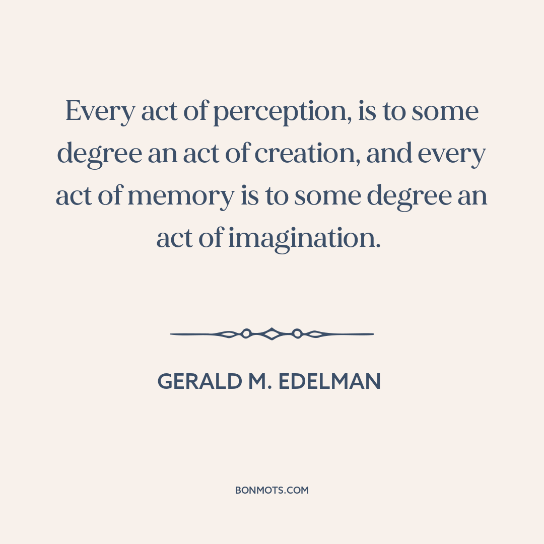 Every act of perception, is to some degree an act of creation, and every act of memory is to some degree an act of imagination.