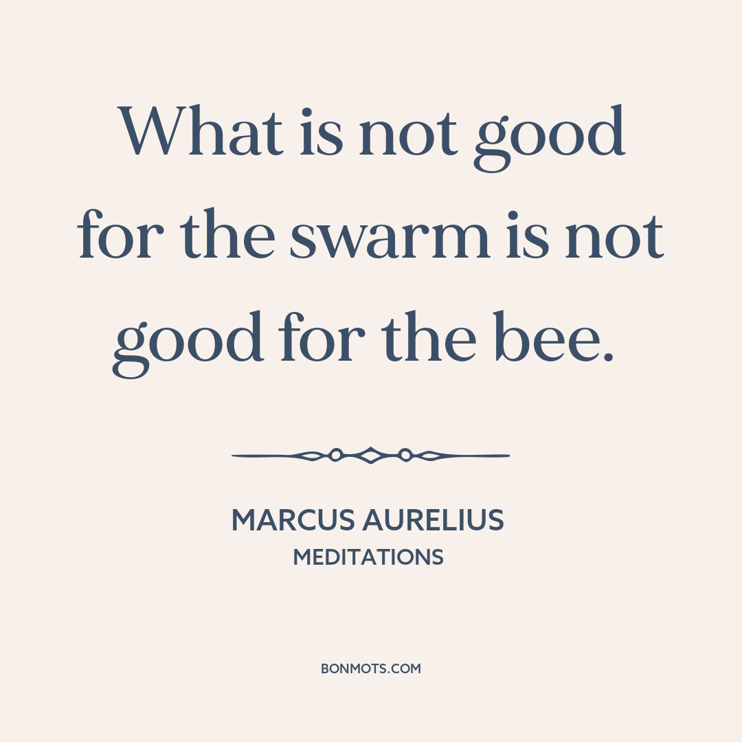 What is not good for the swarm is not good for the bee.