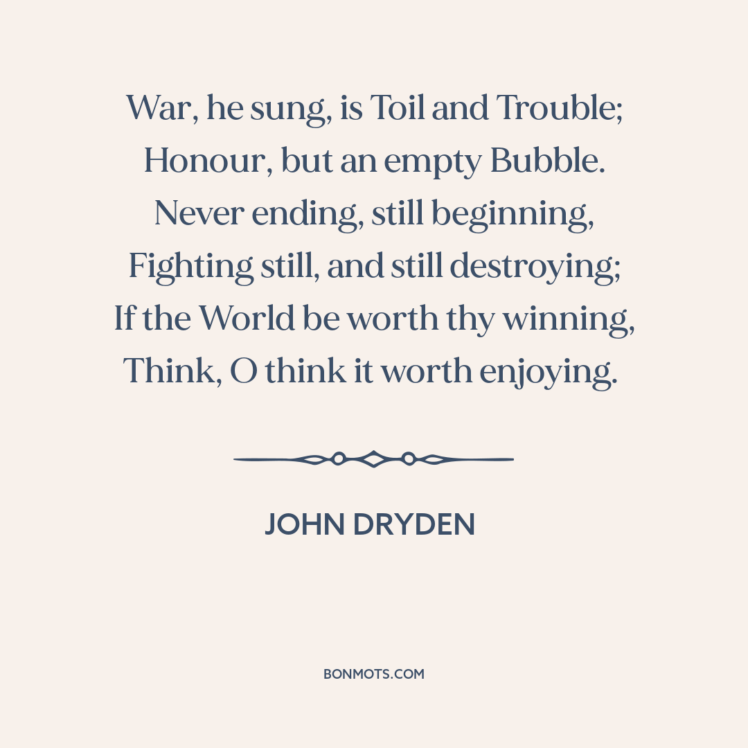 War, he sung, is Toil and Trouble;