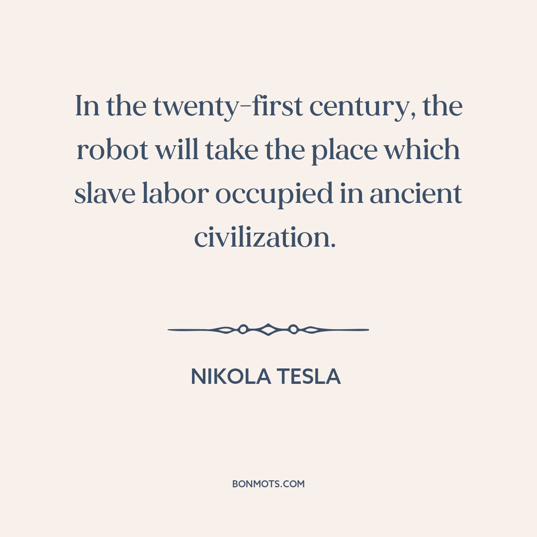 In the twenty-first century, the robot will take the place which slave labor occupied in ancient civilization.