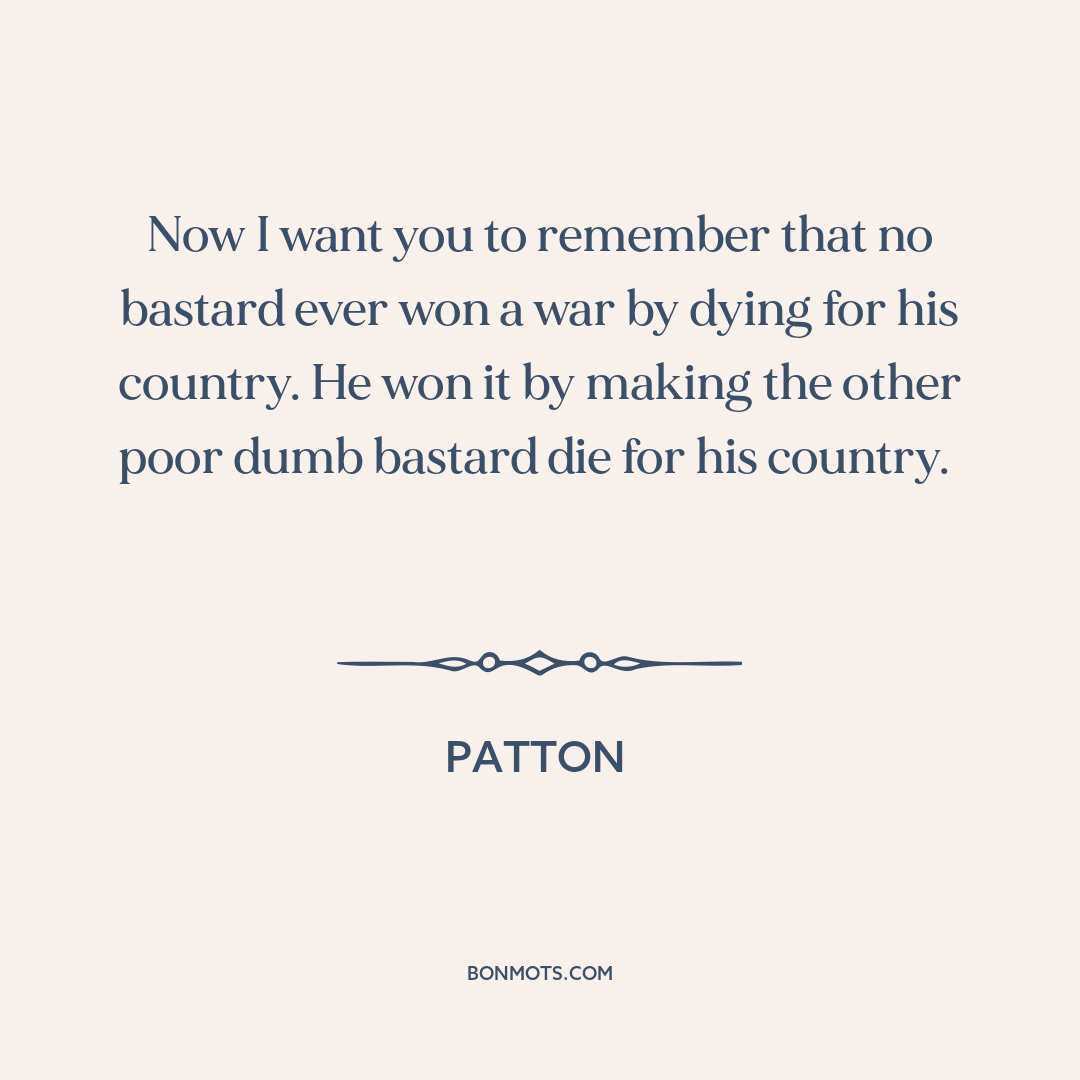Now I want you to remember that no bastard ever won a war by dying for his country. He won it by making the other poor dumb bastard die for his country.