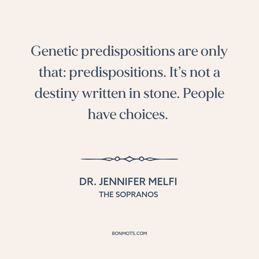 Genetic predispositions are only that: predispositions. It’s not a destiny written in stone. People have choices.