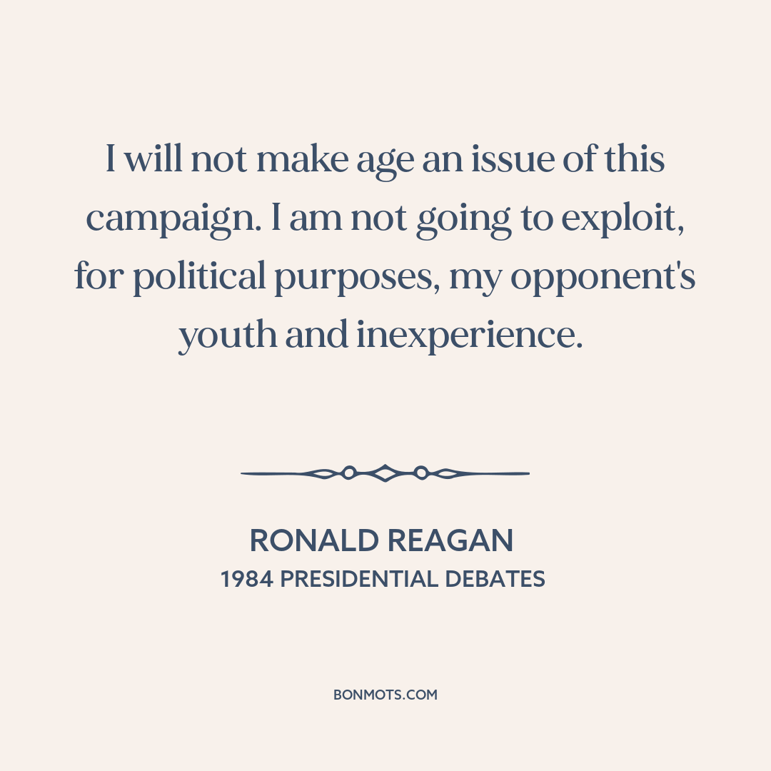 I will not make age an issue of this campaign. I am not going to exploit, for political purposes, my opponent's youth and inexperience.