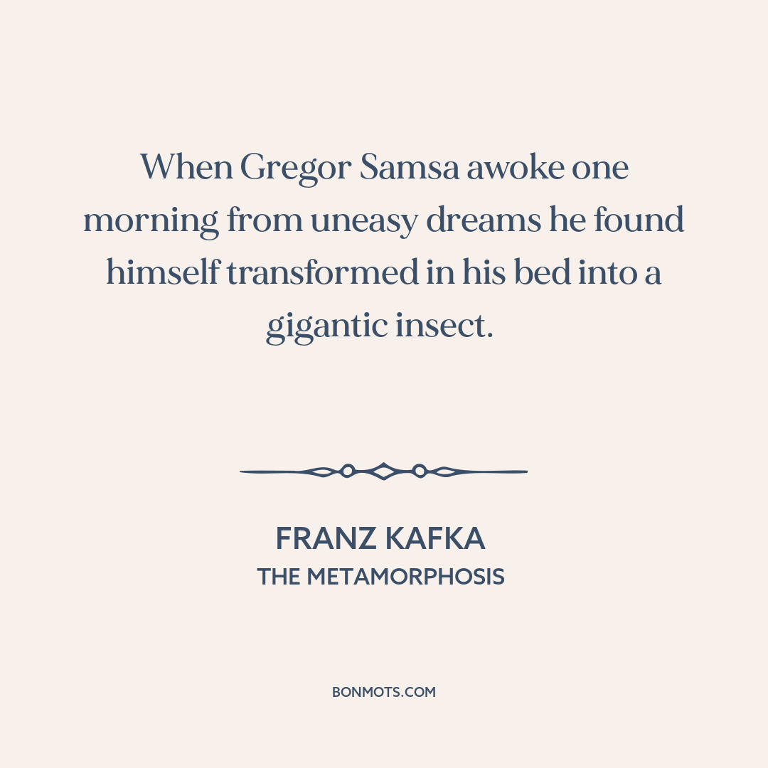 When Gregor Samsa awoke one morning from uneasy dreams he found himself transformed in his bed into a gigantic insect.
