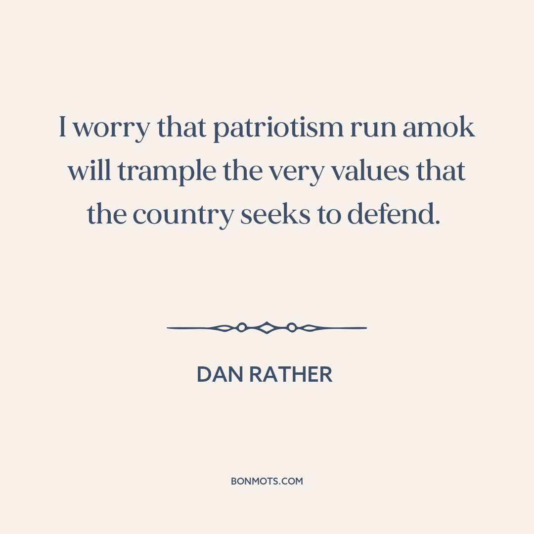 I worry that patriotism run amok will trample the very values that the country seeks to defend.