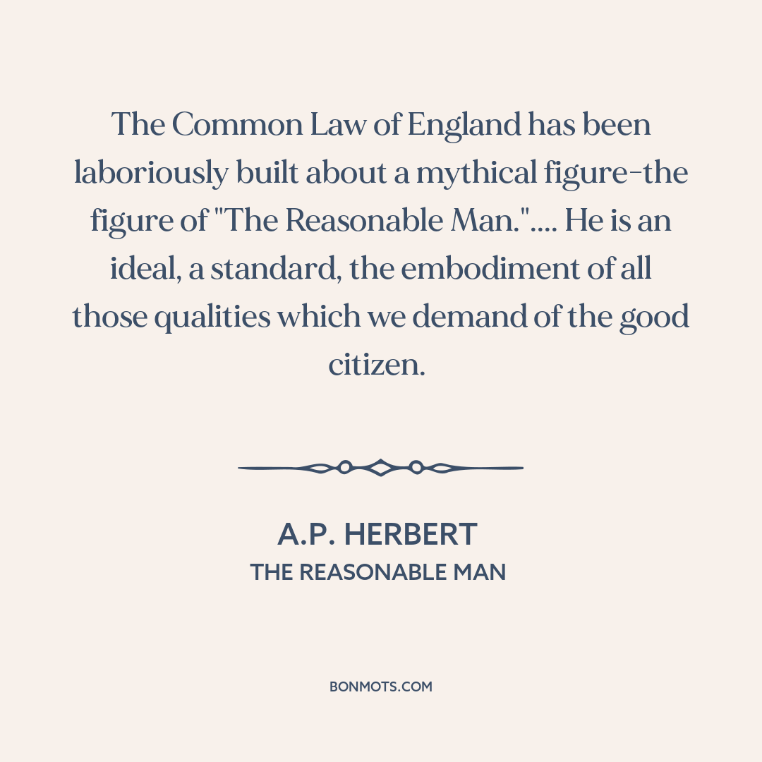 The Common Law of England has been laboriously built about a mythical figure-the figure of "The Reasonable Man.".... He is an ideal, a standard, the embodiment of all those qualities which we demand of the good citizen.