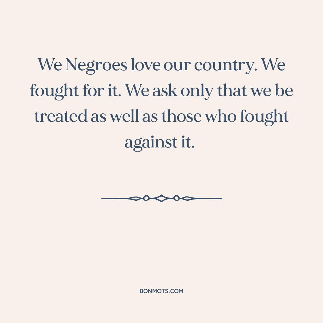 We Negroes love our country. We fought for it. We ask only that we be treated as well as those who fought against it.