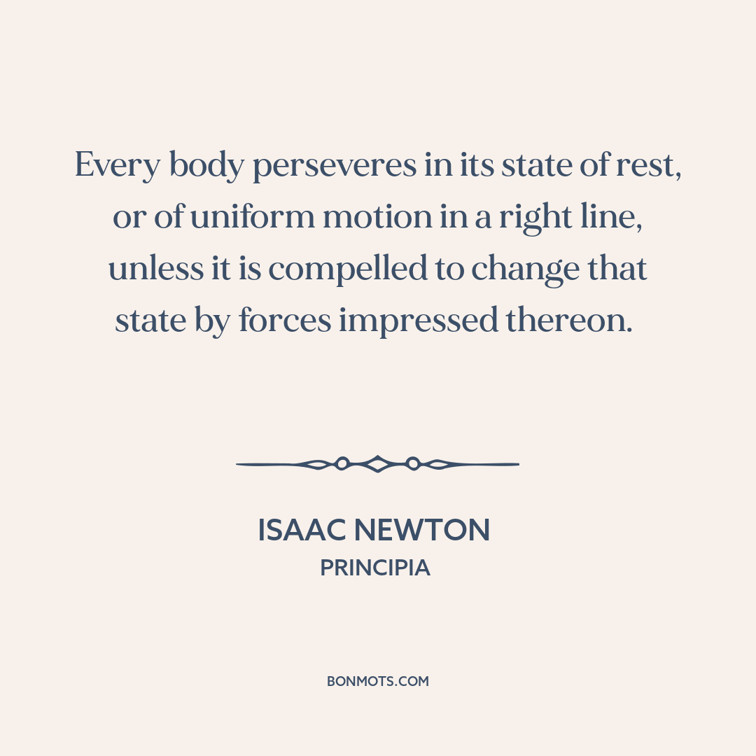 Every body perseveres in its state of rest, or of uniform motion in a right line, unless it is compelled to change that state by forces impressed thereon.
