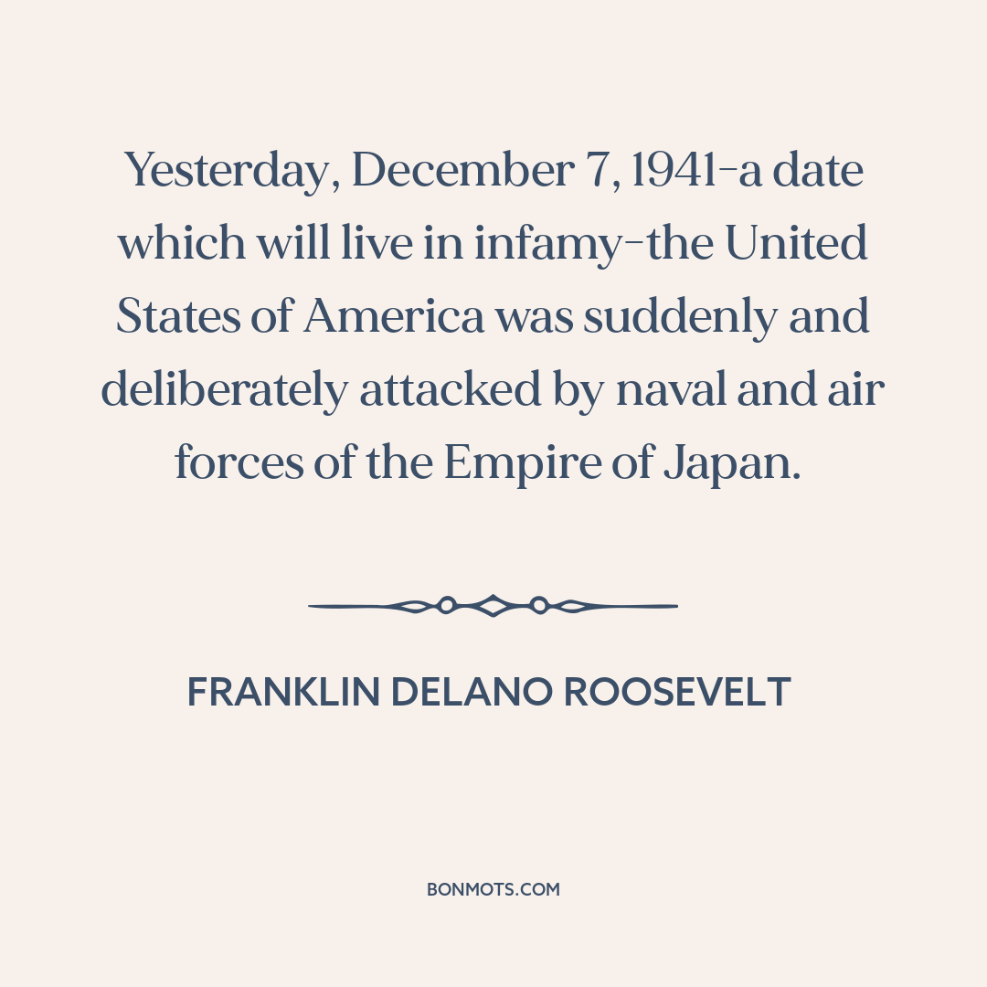 Yesterday, December 7, 1941-a date which will live in infamy-the United States of America was suddenly and deliberately attacked by naval and air forces of the Empire of Japan.