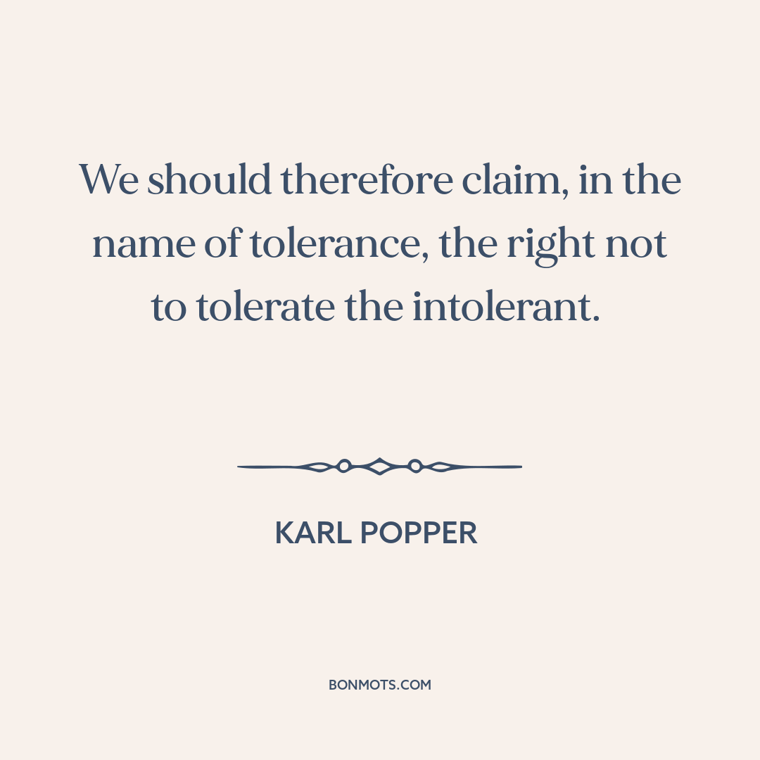 We should therefore claim, in the name of tolerance, the right not to tolerate the intolerant.