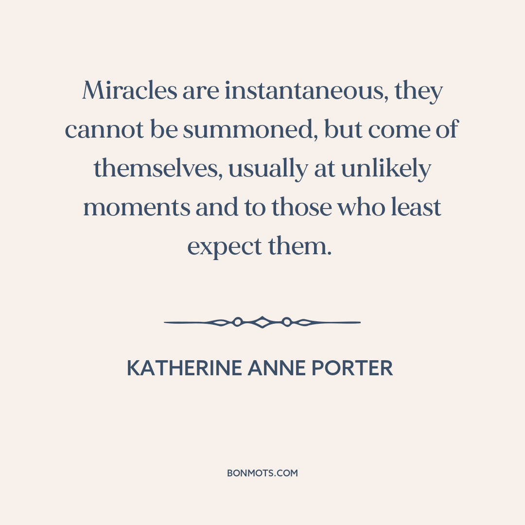 Miracles are instantaneous, they cannot be summoned, but come of themselves, usually at unlikely moments and to those who least expect them.
