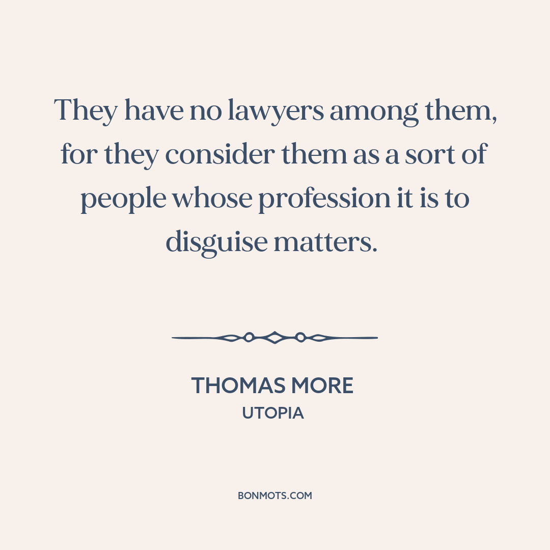 They have no lawyers among them, for they consider them as a sort of people whose profession it is to disguise matters.