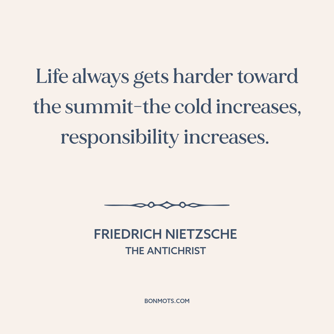 Life always gets harder toward the summit-the cold increases, responsibility increases.