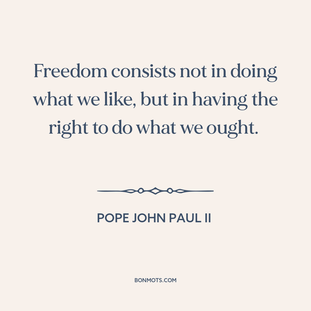 Freedom consists not in doing what we like, but in having the right to do what we ought.